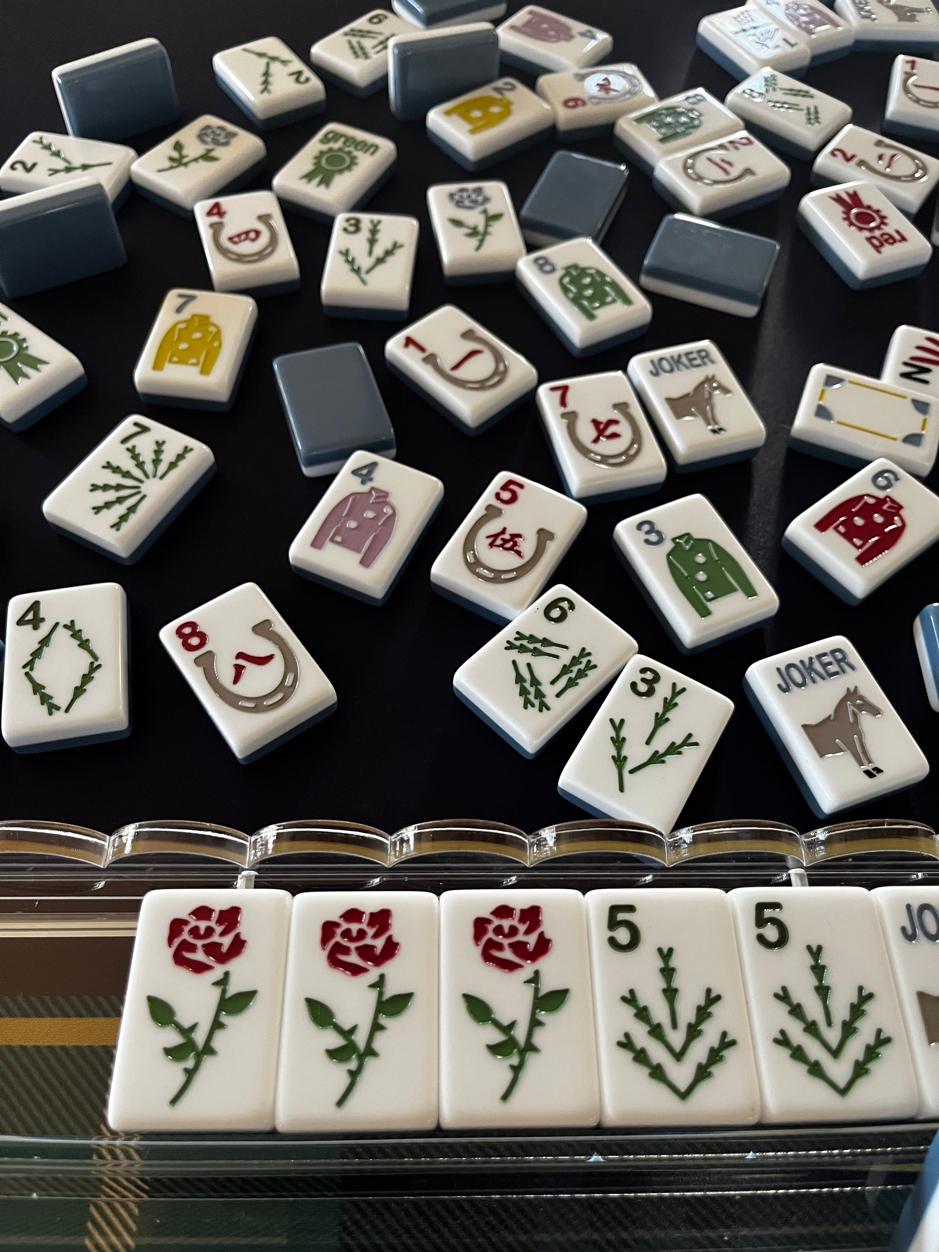 The Polo Club Mahjong Set comes with 160 total tiles to include 2 extra jokers and 6 blank tiles. Tiles are engraved and painted.